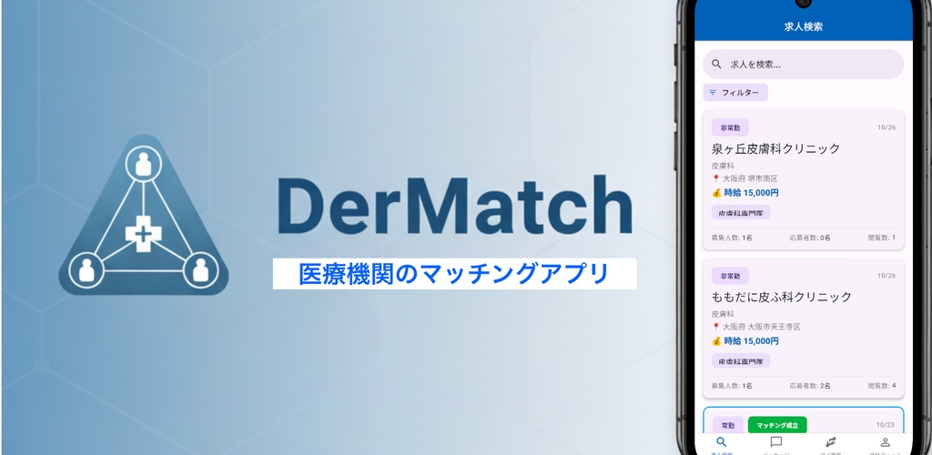 クリニック・病院に特化した求人マッチングプラットフォームです。